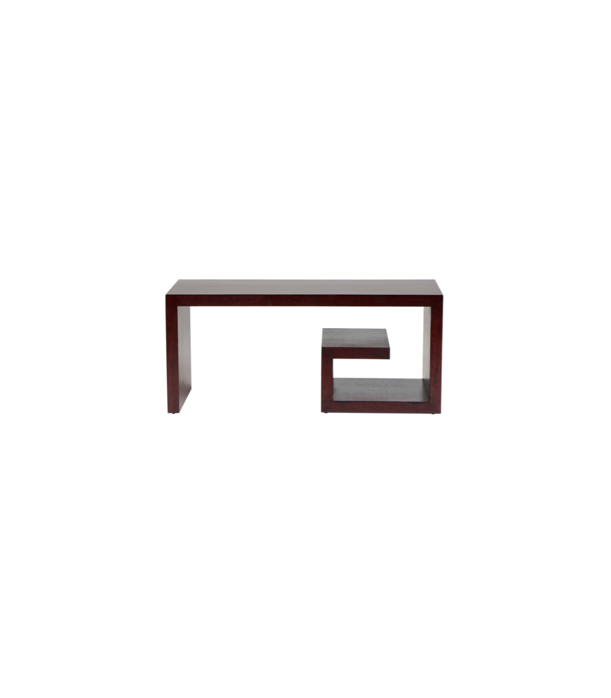 View Details Abitex-T-024 Aries Table made in stainless steel, top in selected wood or glass, with a small ottoman upholstered in fabrics or leather.