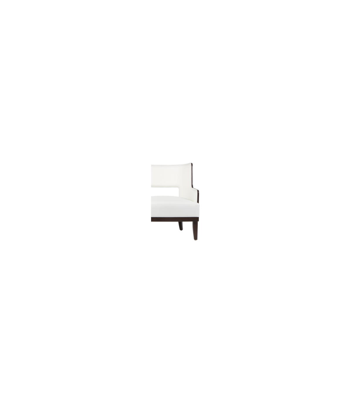 Chair structure in selected wood, with seat and back cushion upholstered in fabrics or leather.