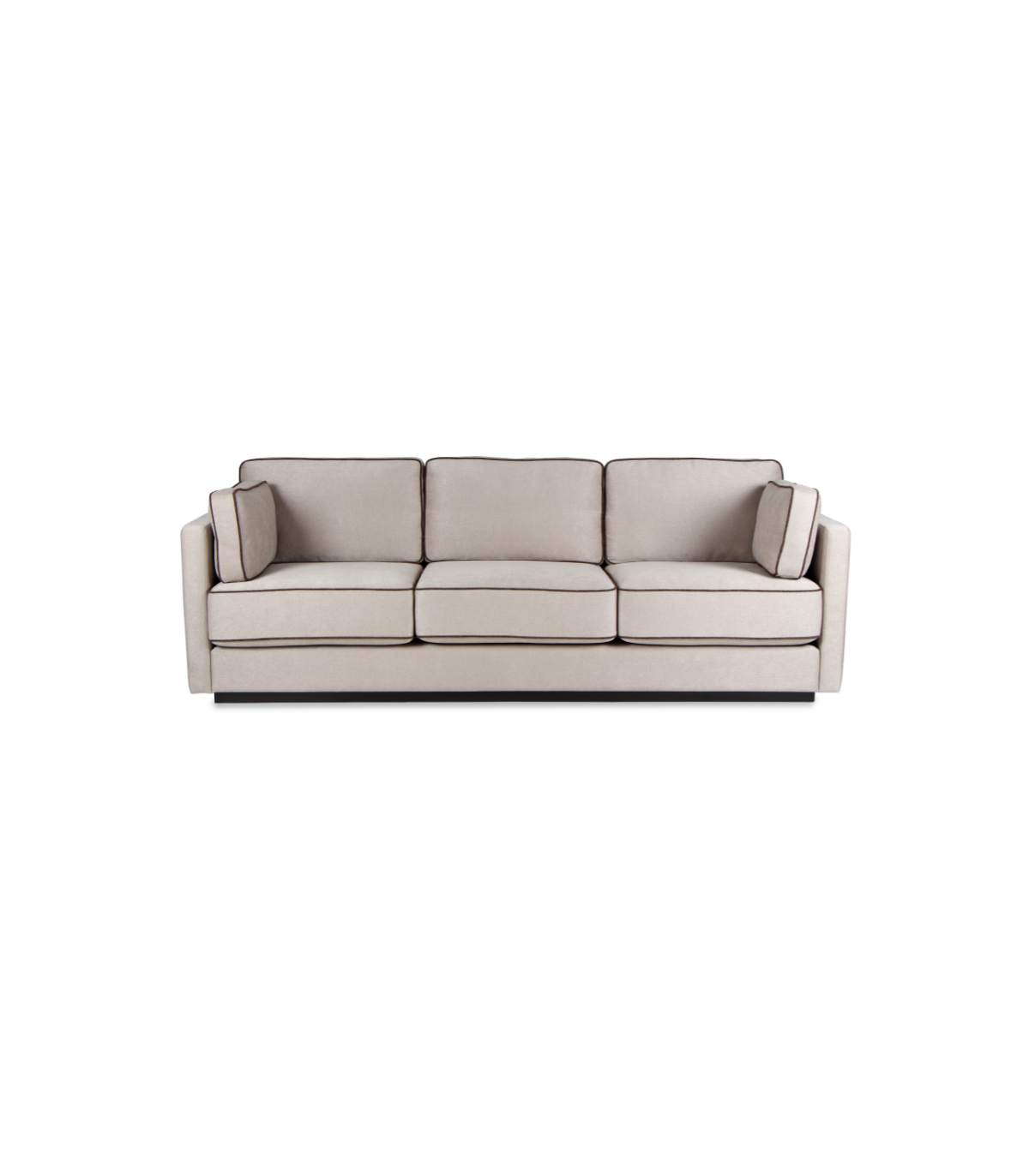 View Details (Abitex-S-177) Emersyn Sofa upholstered in Fabric or leather, base frame in timber with metal capping.